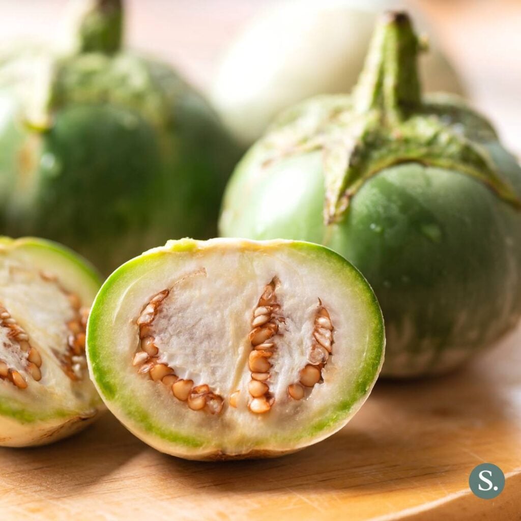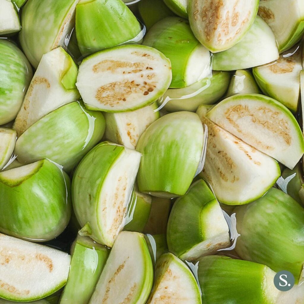 If you can’t find Thai eggplant, don’t substitute it with the large American globe eggplant, as it will break down too much and release excess water. Focus on substitutes that mimic its firm texture. Sometimes the best alternative may not be an eggplant at all.